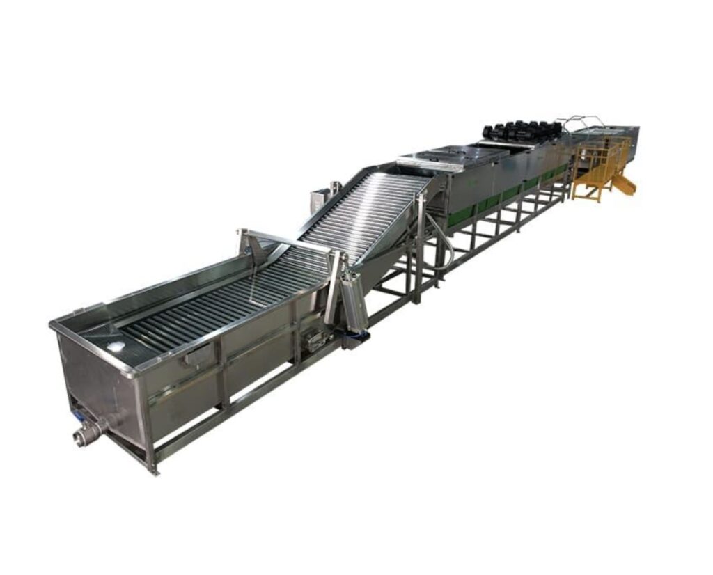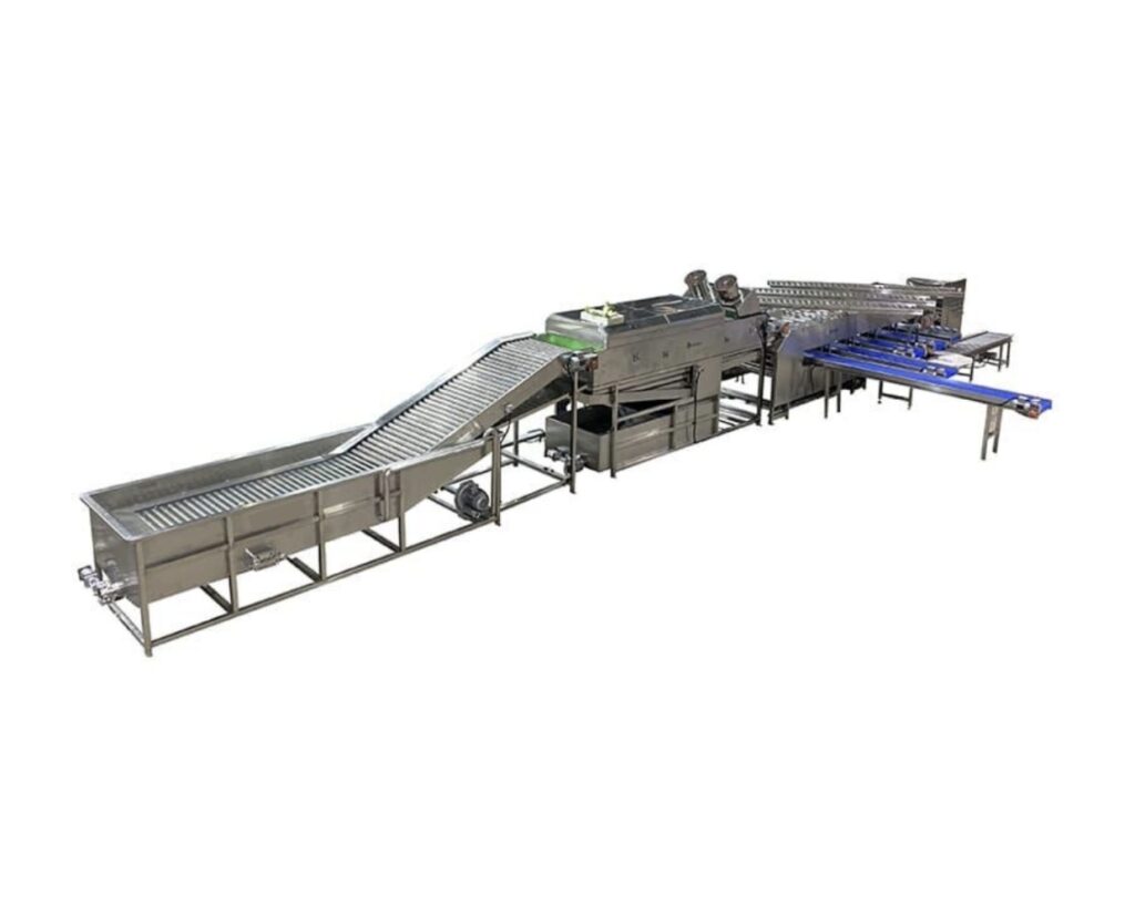 Los rodillos de acero inoxidable giran en la mesa de inspección para la clasificación manual de la calidad.